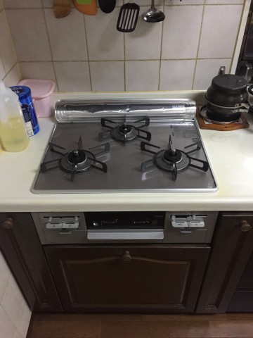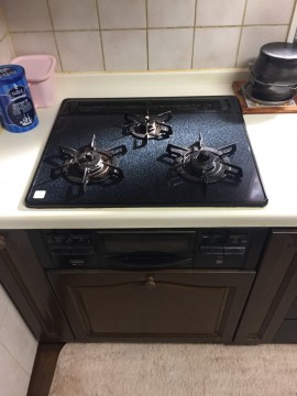 ②ガスコンロ:既存のガスコンロが汚れてしまっていて、同等品で良いからそろそろ替えたいというご希望でしたので、弊社のチラシにも載っているコストパフォーマンスに優れた無水両面焼きのリンナイのガスコンロをご提案。