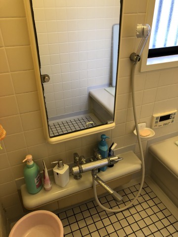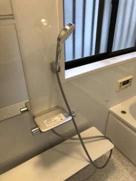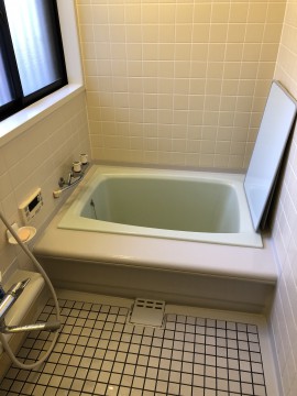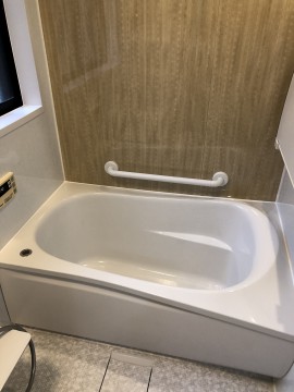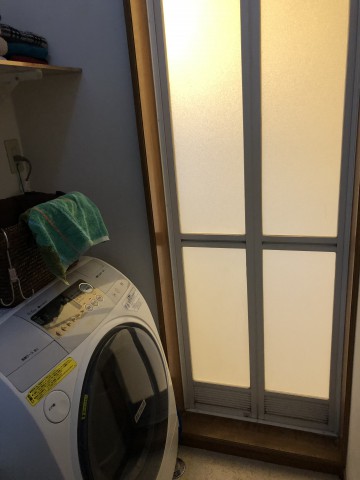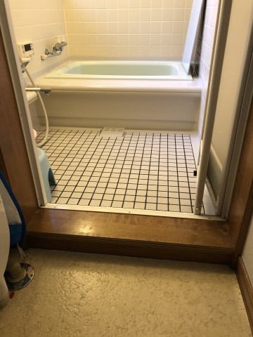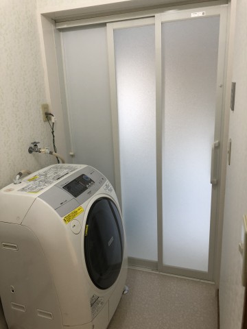 浴室ユニットバス交換時に入口扉を折れ戸から2枚引き込み戸にしました。