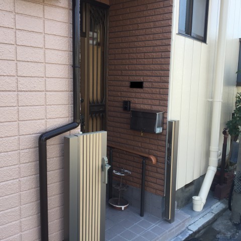 此度は弊社に玄関のリフォ-ムの御用命を頂き誠に有難うございました。足の不自由な奥様も丈夫な手摺りにつかまり、不安無く外出出来る事かと思います。今後共末永いお付き合いを頂けます事を念じ、また小さなお困り事もお気軽に御相談下さればと存じます★・・・・・・★・・・・・・★・・・・・・★・・・・・・★
