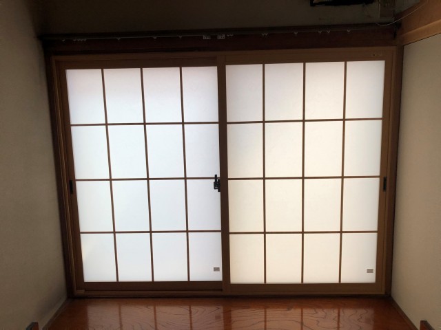 現場が和室だった為、和の雰囲気にも合う和紙調格子入りを選定致しました。