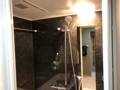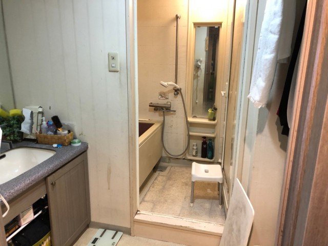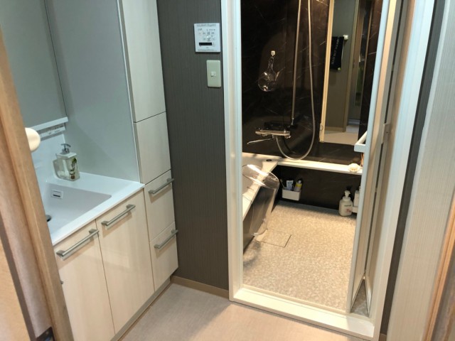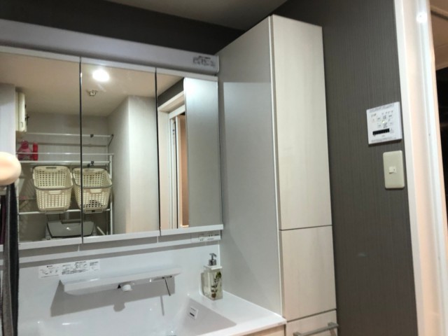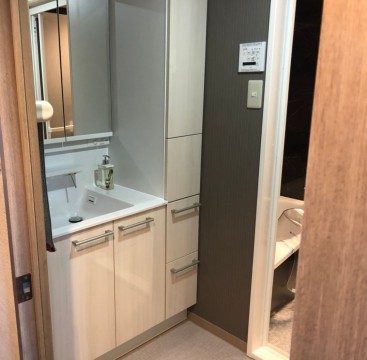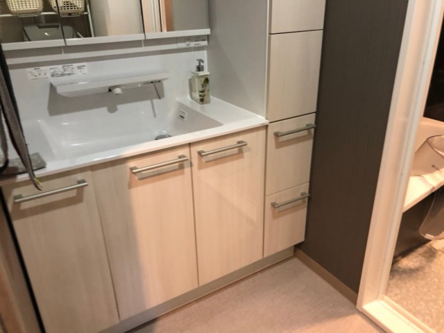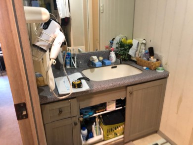 洗面脱衣所内装パック工事(天井/壁ビニールクロス貼替、床クッションフロア貼替)