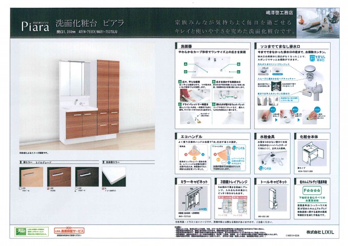 今回採用した洗面化粧台は、LIXIL ピアラ です。