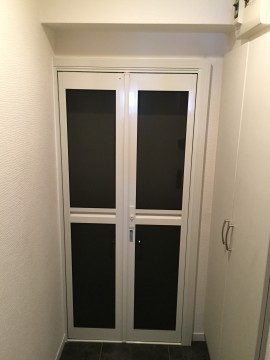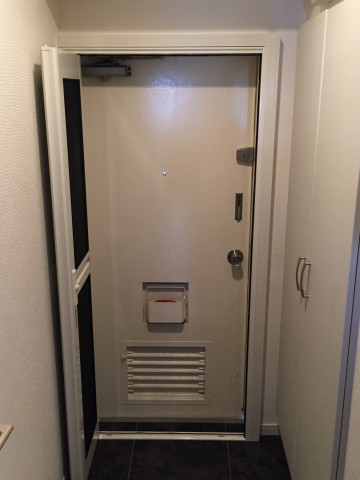 梁、玄関横の収納扉、ドアクローザー、幅木などを考慮しながらでしたので、いつもより少し異なった施工の仕方になりましたが、問題なく取り付けができました。