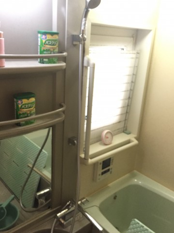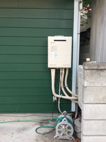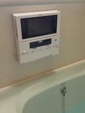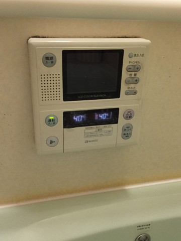 ⑤給湯器:ノーリツの24号オートタイプ+5V型ワイド ワンセグ防水テレビを採用。今回新しい給湯器の取り付け位置を変えたいというご依頼でした。もともと防水コンセントはありましたので、給水管・給湯管・追い炊き管・ガス管(東京ガス)を1.6m程延長しました。