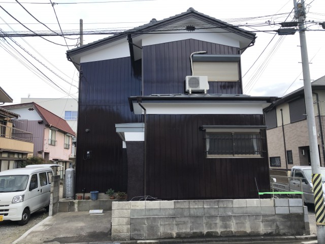 この度は弊社への御用命を頂き誠に有難うございました。お打ち合わせ時に4パタ-ンの外壁のカラ-サンプルをお作りさせて頂いた結果、とても落ち着いた、飽きの来ない雰囲気の外壁になり、また仕上がりに関しましても御満足を頂けたご様子で安堵致しております。冬場の工事で期間中天候にも恵まれ予定よりも早く工事が進める事が出来ました。また何か再度の御用命の際には御気軽に御連絡、御相談を頂けますと光栄に存じます。