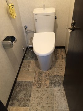 シンプルなお掃除のしやすいトイレに変更されたいとの事でLIXIL「アメージュZ+シャワートイレDシリーズ」に変更。内装も床クッションフロア貼替のみですがアメリカンカジュアルな空間に変わりました。