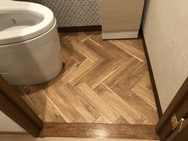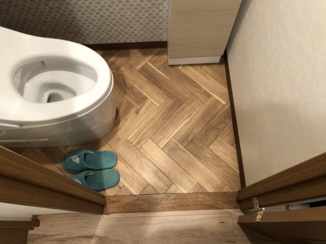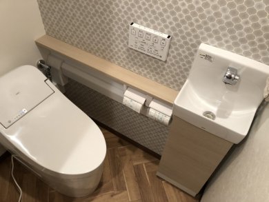 お客様のセンスが光るクロス柄のご選定で壁紙を張り替えたことで上品な雰囲気のトイレになり全体が明るくなりました。