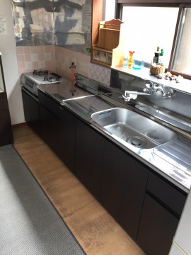 シンクキャビネットだけの交換も可能でしたが、調理台キャビネットやコンロキャビネットとの色の差が生じるため、どうせならと下台すべての交換になりました。