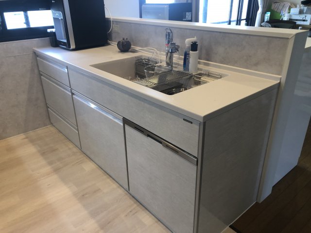 システムキッチン : タカラスタンダード トレーシア コンクリートホワイト・シルバーモール