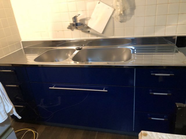 二層シンク・引き出しのキッチンを特注で作成させていただきました。