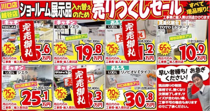 3. [越谷市] 【速報】チラシ掲載の展示品セール キッチン Bb完売!