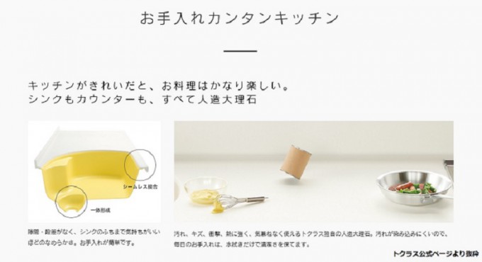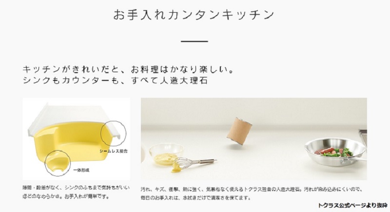 人口大理石の天板は質も良く汚れがつきにくい、熱に強いという