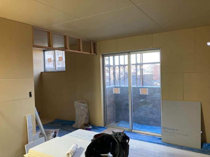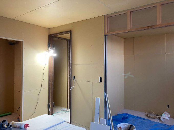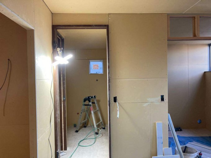 石膏ボードがつくと一気にお部屋っぽさが増してきます。