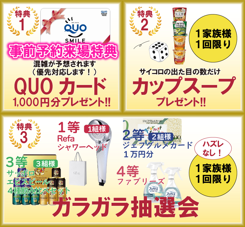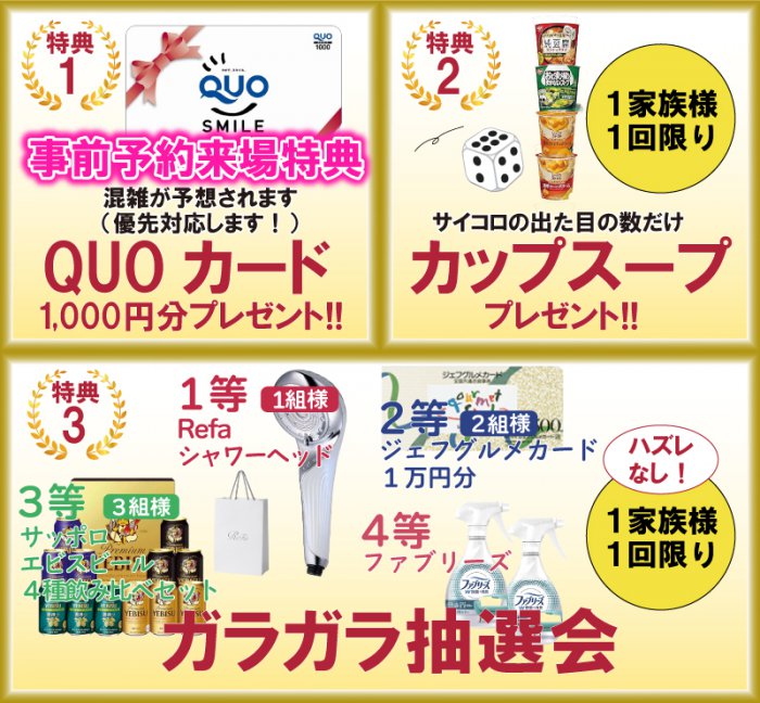 ガラガラ抽選会:特賞は「Rafa シャワーヘッド」や「サッポロ エビスビール」など豪華賞品をご用意!