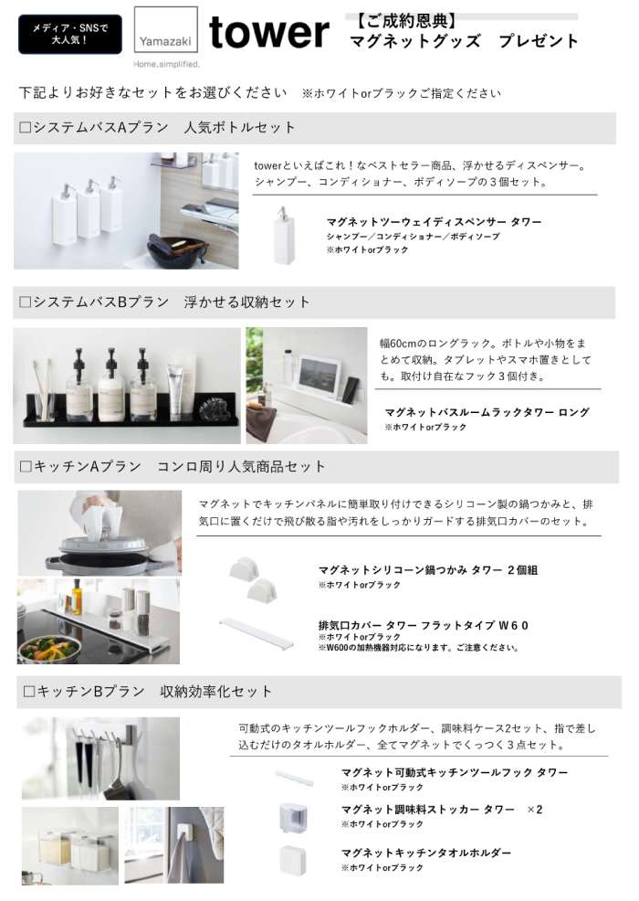 タカラスタンダードのホーロー壁にマグネットでピタッとくっつく大人気のtowerアイテムから、お好きなセットをお選びいただけます。