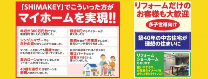 リフォームのプロ「嶋澤啓工務店」が手掛ける不動産ブランドSHIMAKEY(シマケイ)だからこそできる、物件探しからリノベ、ローンまでを1か所で完結する相談会です 。