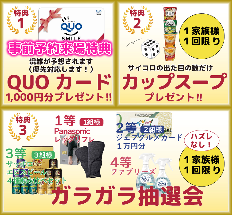 【来場特典】 サイコロの出た目の数だけ!カップスーププレゼント 。
