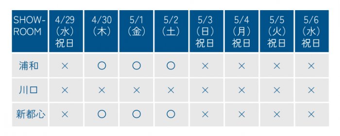 2026年ゴールデンウィークに伴う全店休業のお知らせ