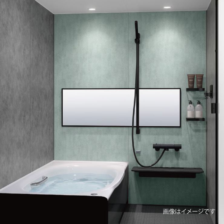 エコアクアシャワー・パッとくるりんポイ排水口・キレイドア・ミナモ浴槽・換気扇付き・LED照明・アクセントパネル