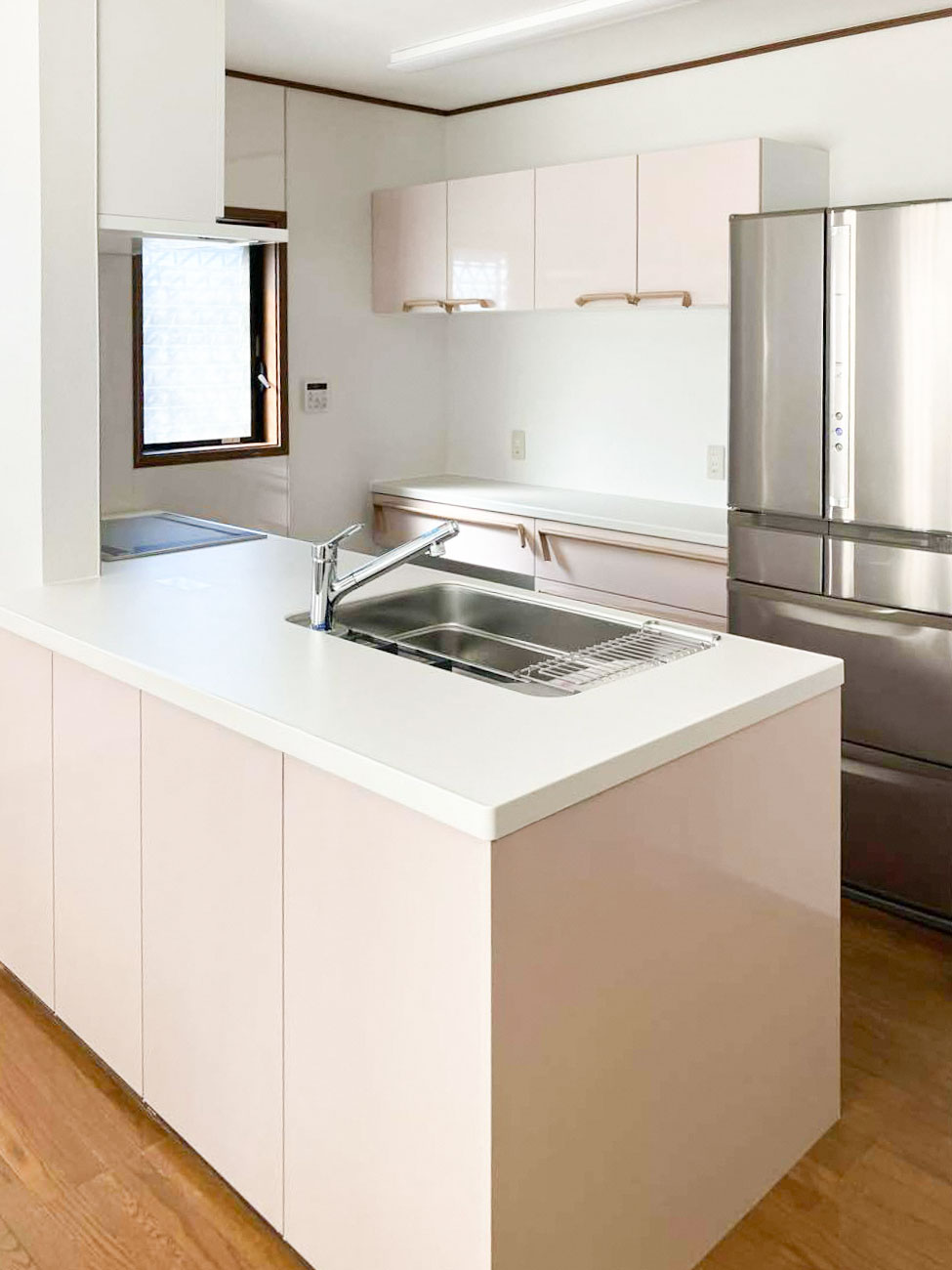 オープン空間の対面型キッチンにリフォームすれば、料理中でもお母さんと家族とのコミュニケーションがとれます!小さなお子様の動きにも目が届くので安心!