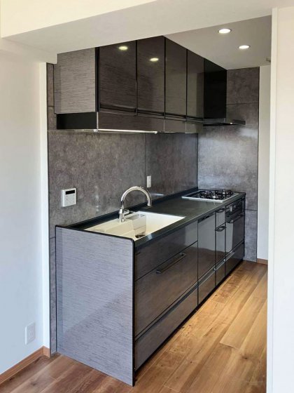主な仕様:人造大理石天板・サイレントレール引き出し・ガラストップコンロ・ひろびろシャワー・薄型レンジフード・キッチンパネル