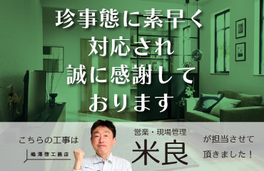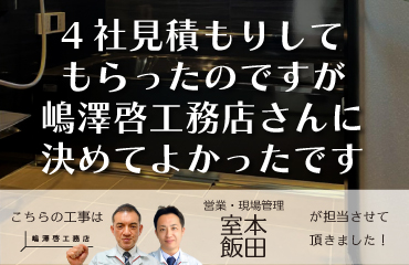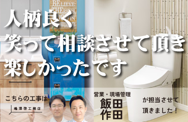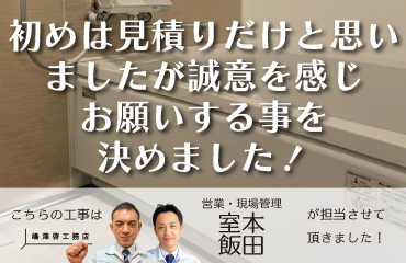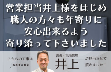 工事施工者様は、どの方も丁寧な仕事をしてくださったと思っています。また、機会がありましたらご連絡させていただきます。