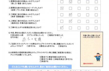 改めて、別のリフォーム案件が生じた際には「いの一番」で御社に相談したく、今後も宜しく「老朽家屋」のメンテナンスに寄り添っていただきたく、お願い申し上げます。