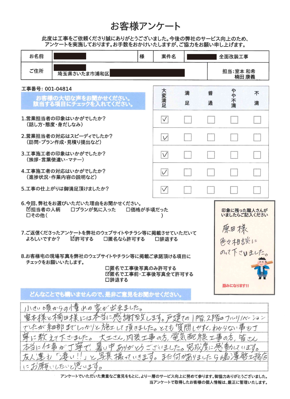 さいたま市南区│フルリフォーム工事ご依頼のお施主様